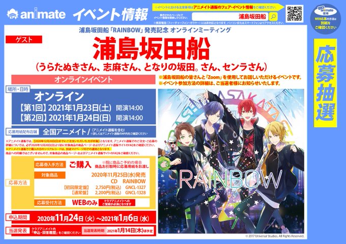 Cd予約情報 アルバム 浦島坂田船 Rainbow 初回限定盤 アニメイト通販で予約可能サガ アニメイト特典 は ボイスド 11 01 佐賀市 雑貨 アニメイト モラージュ佐賀